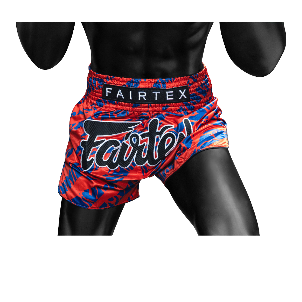The Fairtex Muay Thai Shorts BS1958 Red/Blue are designed for performance, comfort, and durability. Featuring a bold Fairtex logo, these Thai boxing shorts provide a professional look suitable for both training and competition.