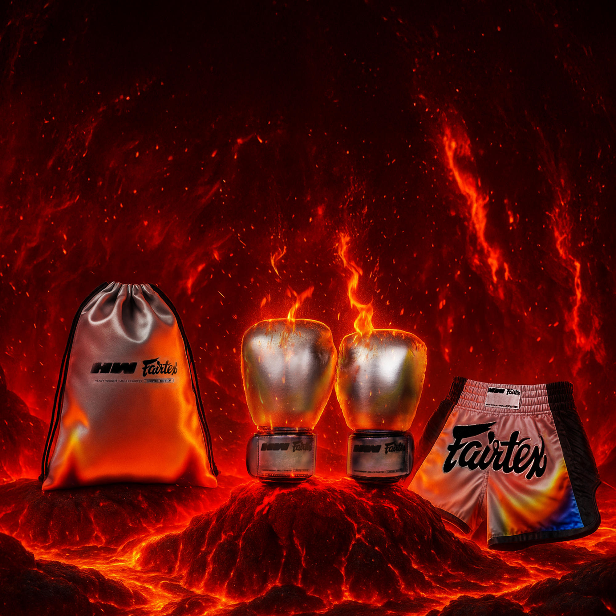 Get the ultimate Fairtex x Milli collaboration experience with this exclusive bundle featuring both the limited edition boxing gloves and boxing shorts. This complete set brings together two iconic pieces from one of the most exciting collaborations in combat sports.